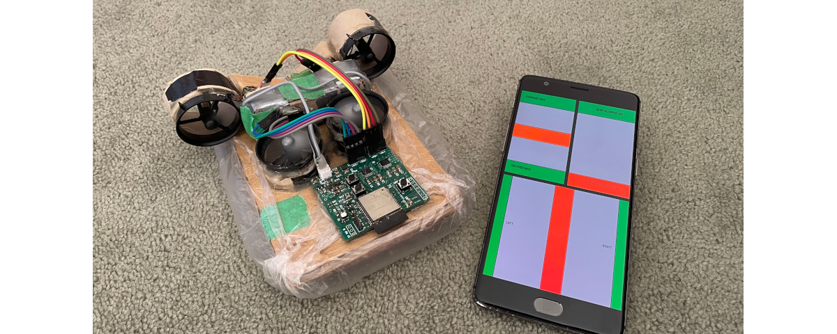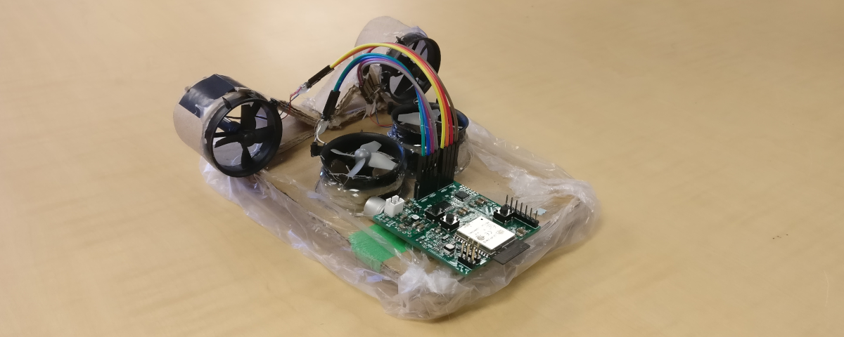 I started making a mini-RC hovercraft as a fun side project which ended up being used as a display project by Massey University. The body of the hovercraft is made from cardboard and hot glue to keep the weight down. I custom designed the PCB specifically for this project using Altium. The PCB uses an ESP32 as its main processor and for communications. There is a buck-boost voltage regulator on board, as well as motor drivers, an RGB LED, and a 9-axis IMU. The hovercraft is controlled from a phone app written using JavaScript and Cordova.